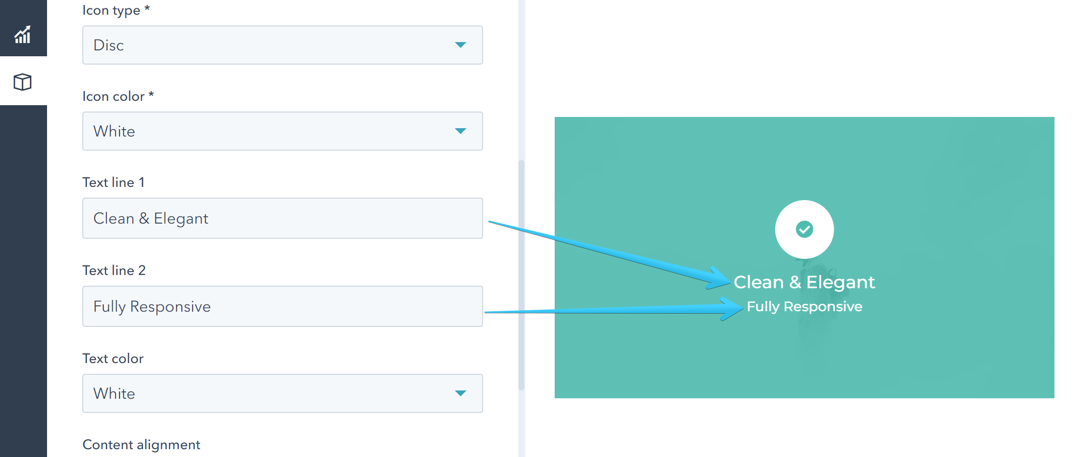 The text and icon will automatically decrease in size on smaller screens, but it depends on your image and text length if it fits the area. That’s why it’s always a good idea to test your page on multiple screen sizes. HubSpot provides a preview feature where you can test your page on various screen sizes directly in the page editor. More about that here.