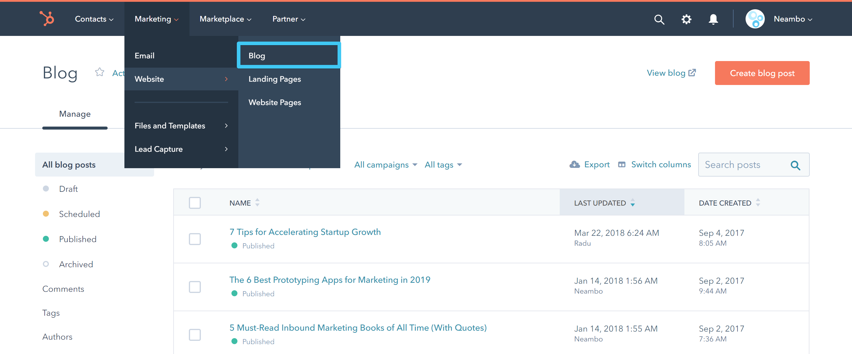Before creating your first blog post in HubSpot you need to set up a blog.